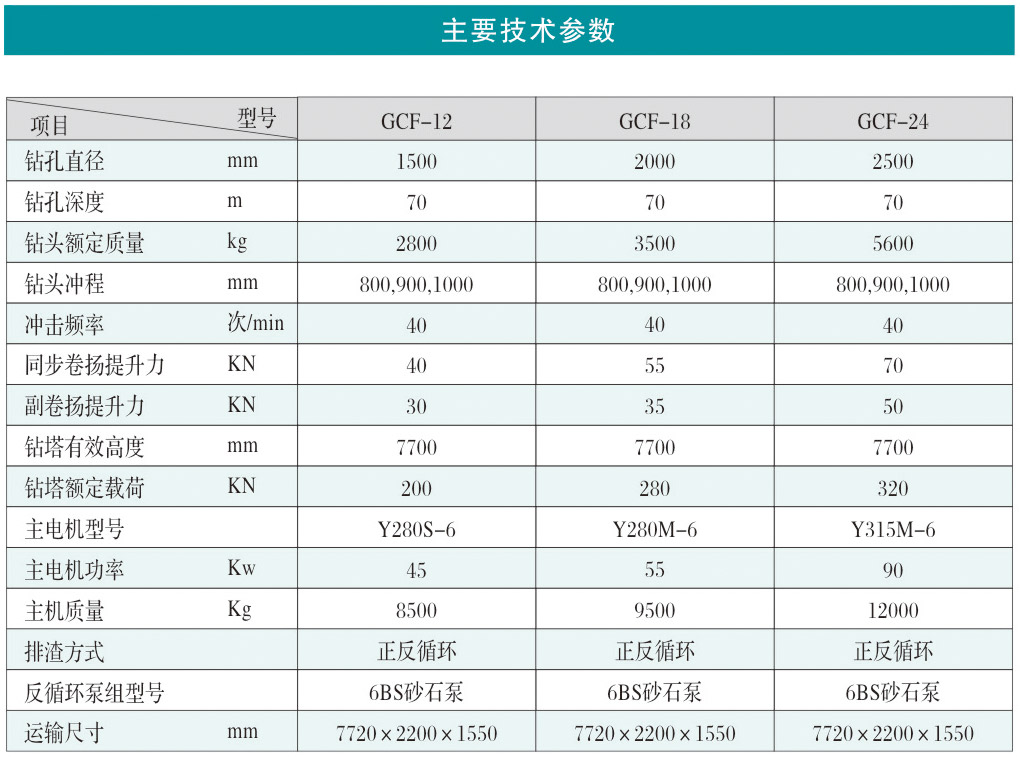 GCF型系列沖擊反循環(huán)工程鉆機(jī)為我公司研制的基礎(chǔ)工程施工設(shè)備,適用于土層,巖層,尤其適用于卵礫石、膠結(jié)卵礫石等復(fù)雜地層的基礎(chǔ)施工,廣泛應(yīng)用于橋梁基礎(chǔ)、電站基礎(chǔ)、地下連續(xù)墻、水井鉆鑿等工程施工。該鉆機(jī)技術(shù)先進(jìn),性能可靠,價格適中,為同類鉆機(jī)之精品。